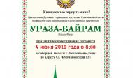 УРАЗА БАЙРАМ состоится 4 июня 2019г. в 8:00