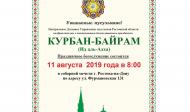 Курбан-байрам состоится 11 августа 2019г. в 8:00.