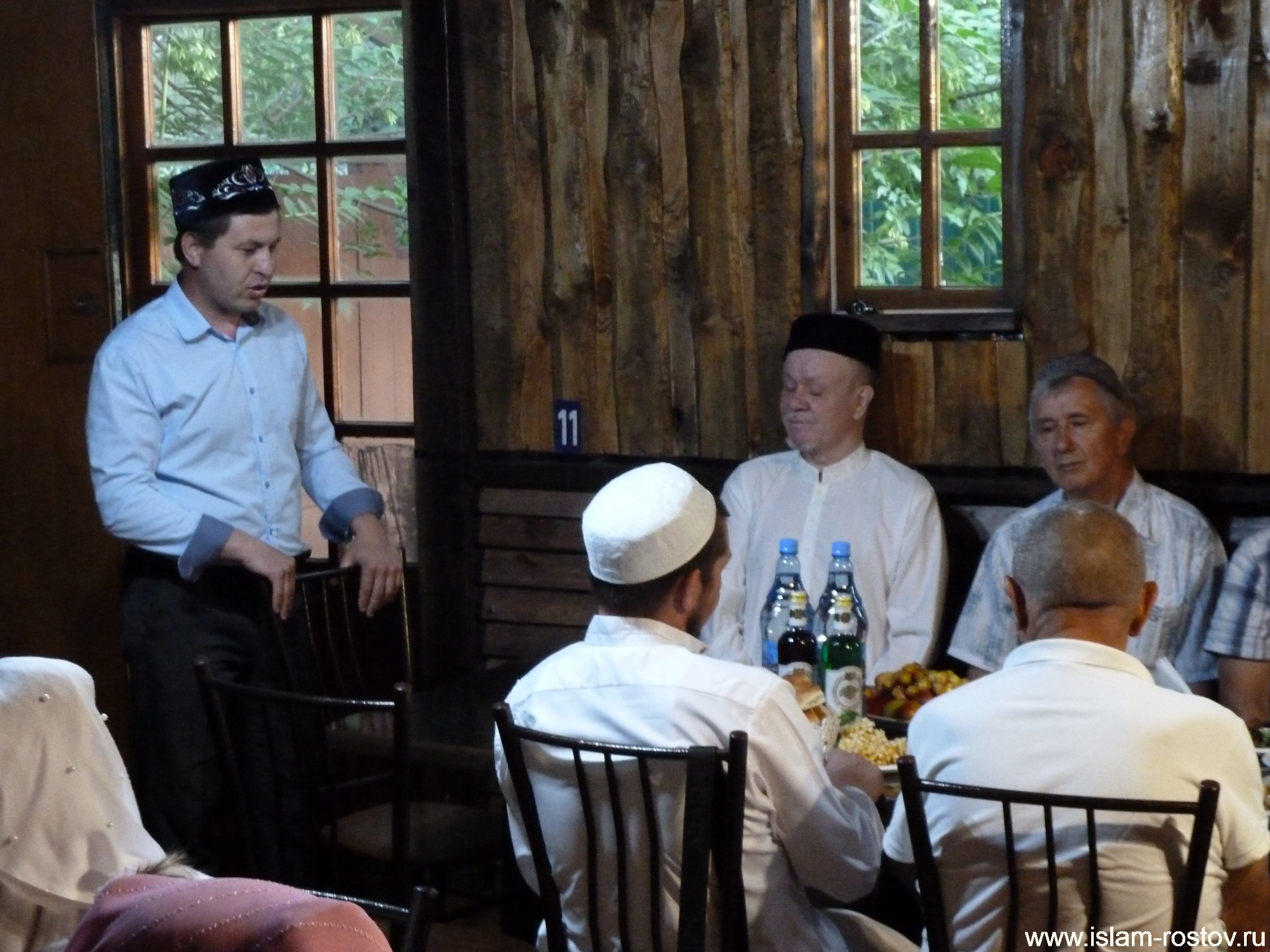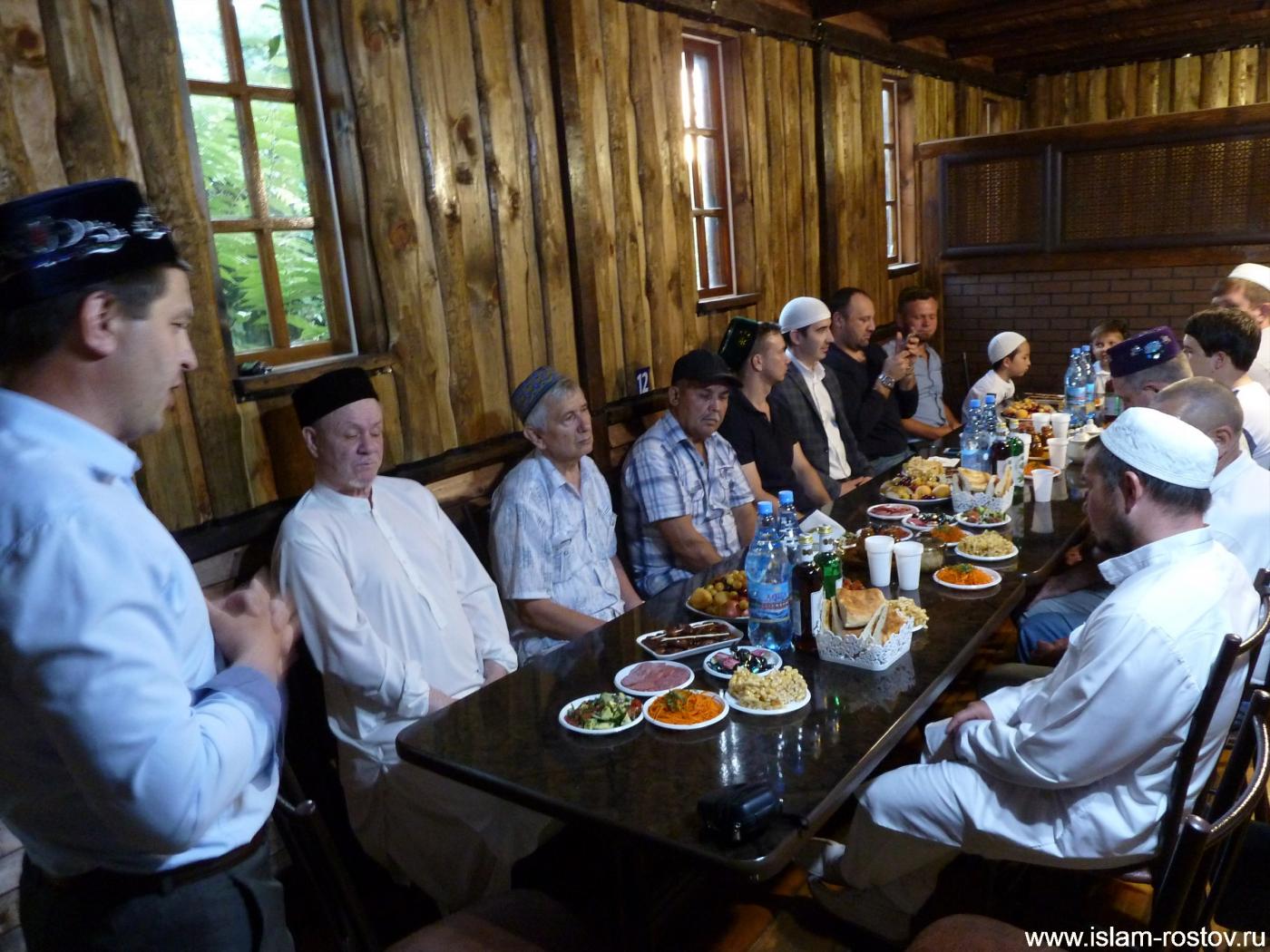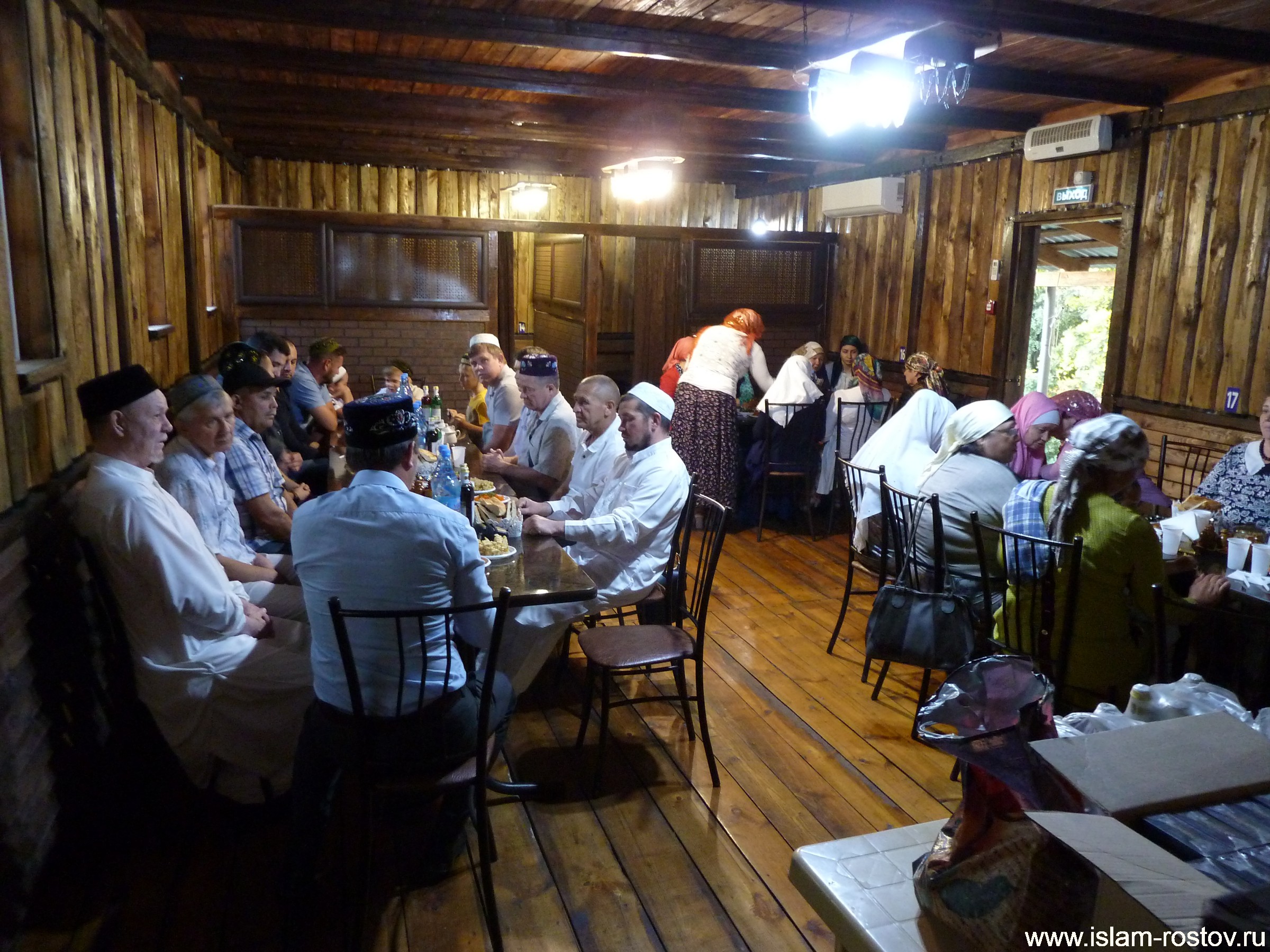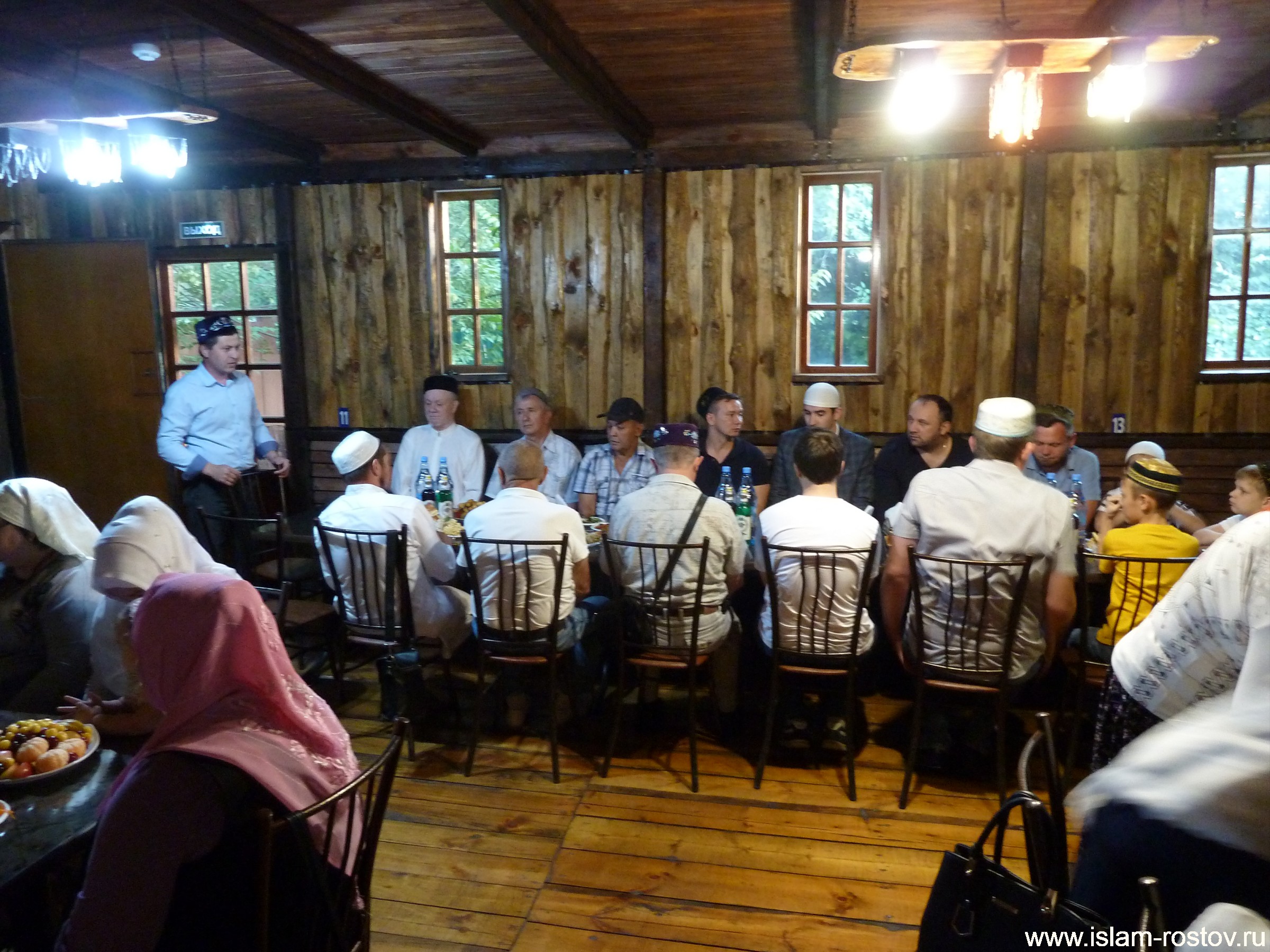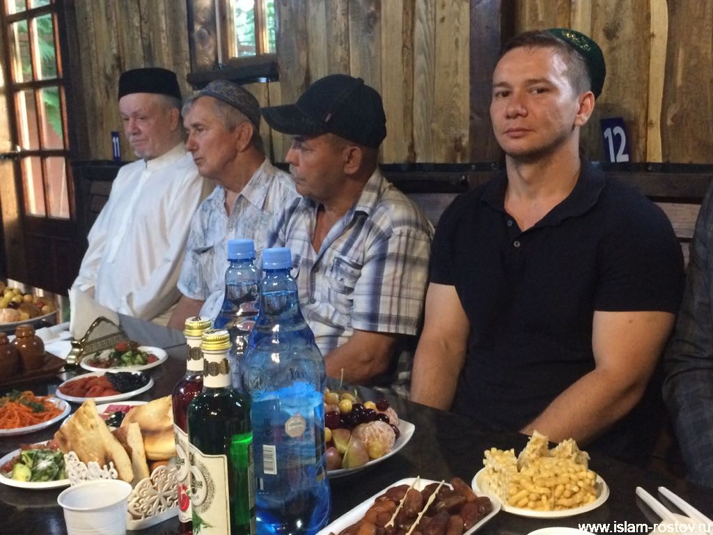 Поле окончания экскурсии – верующие перешли в халяль-кафе “Аль-Бухарий” где состоялся ифтар организованный Ростовским татаро-башкирским культурным центром “Якташлар” и ЦДУМРО . На коллективном ифтаре присутствовали религиозные деятели и активисты татаро-башкирской общины г. Ростова-на-Дону. Традиционно мероприятие началось с чтения Священного Корана, а также юные ученики татарского класса и участники праздничного ифтара прочитали стихи о Рамазане.