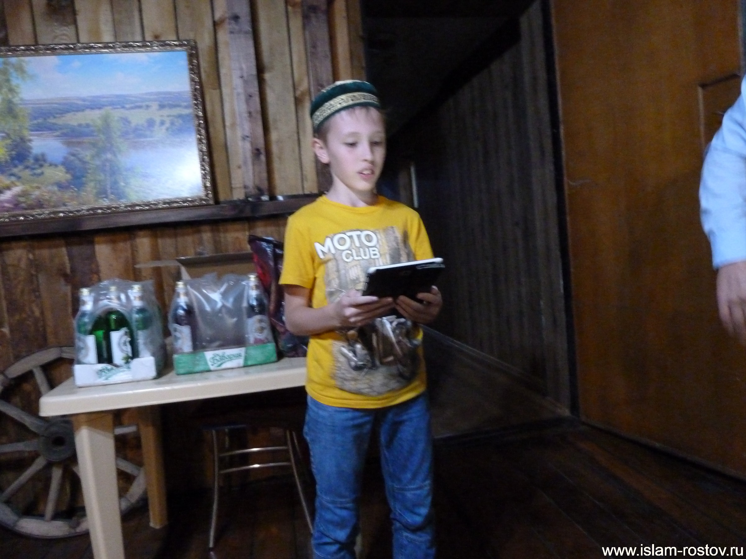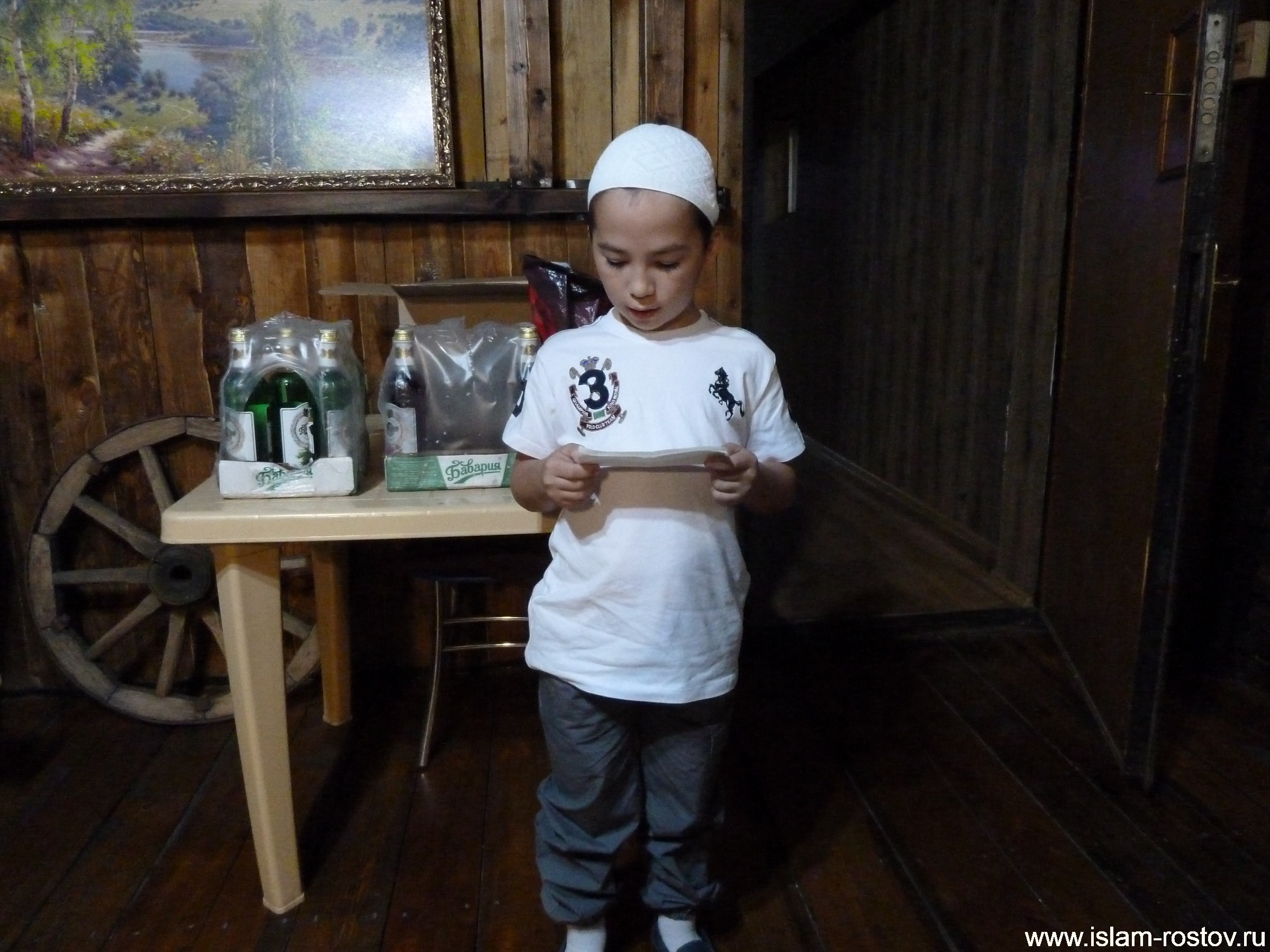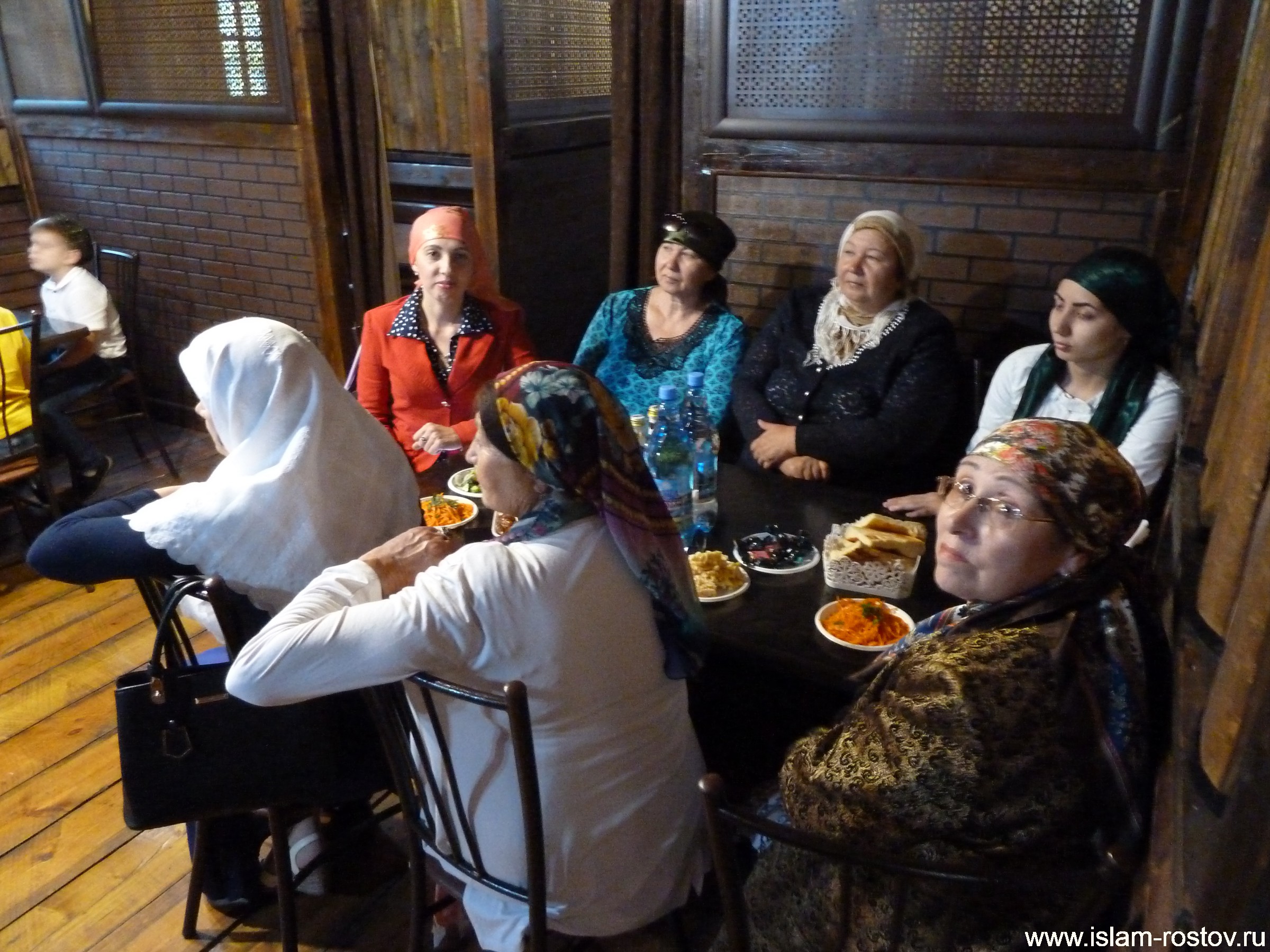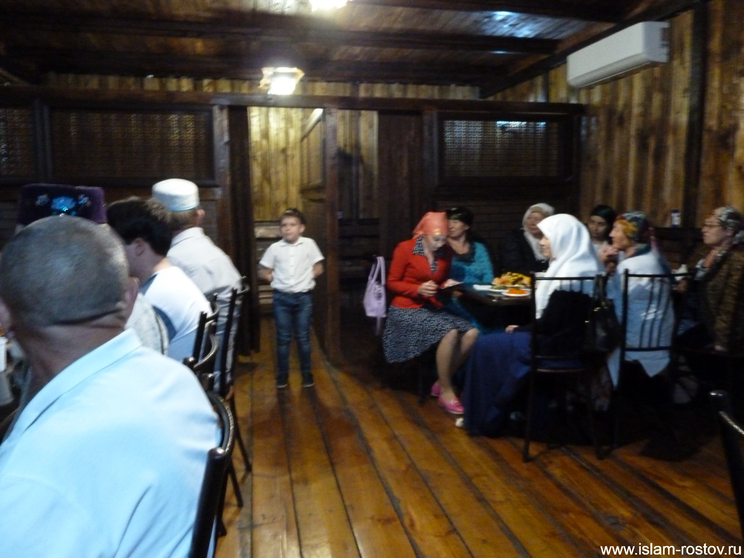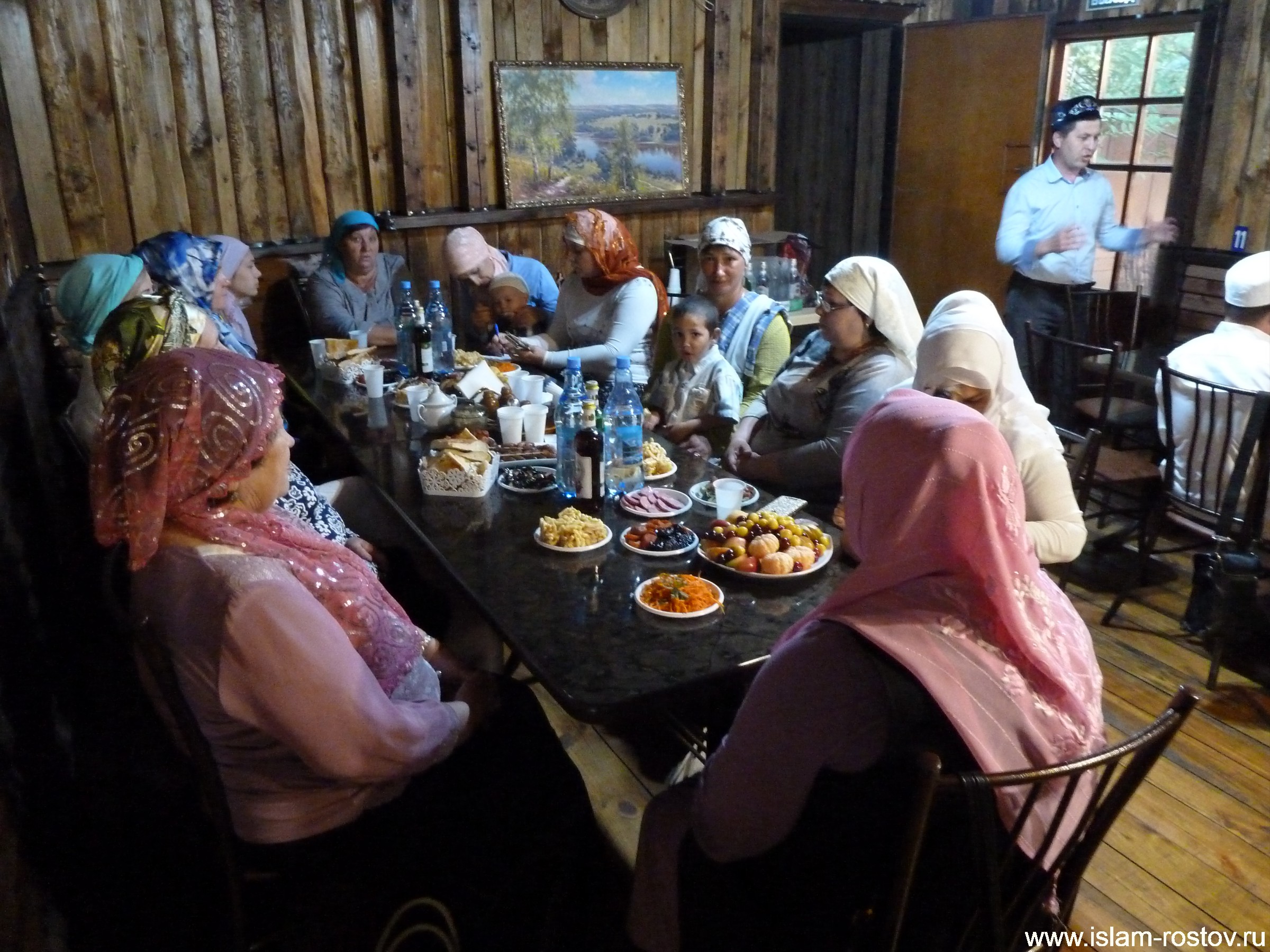 Поле окончания экскурсии – верующие перешли в халяль-кафе “Аль-Бухарий” где состоялся ифтар организованный Ростовским татаро-башкирским культурным центром “Якташлар” и ЦДУМРО . На коллективном ифтаре присутствовали религиозные деятели и активисты татаро-башкирской общины г. Ростова-на-Дону. Традиционно мероприятие началось с чтения Священного Корана, а также юные ученики татарского класса и участники праздничного ифтара прочитали стихи о Рамазане.