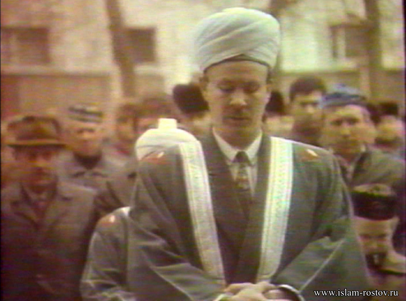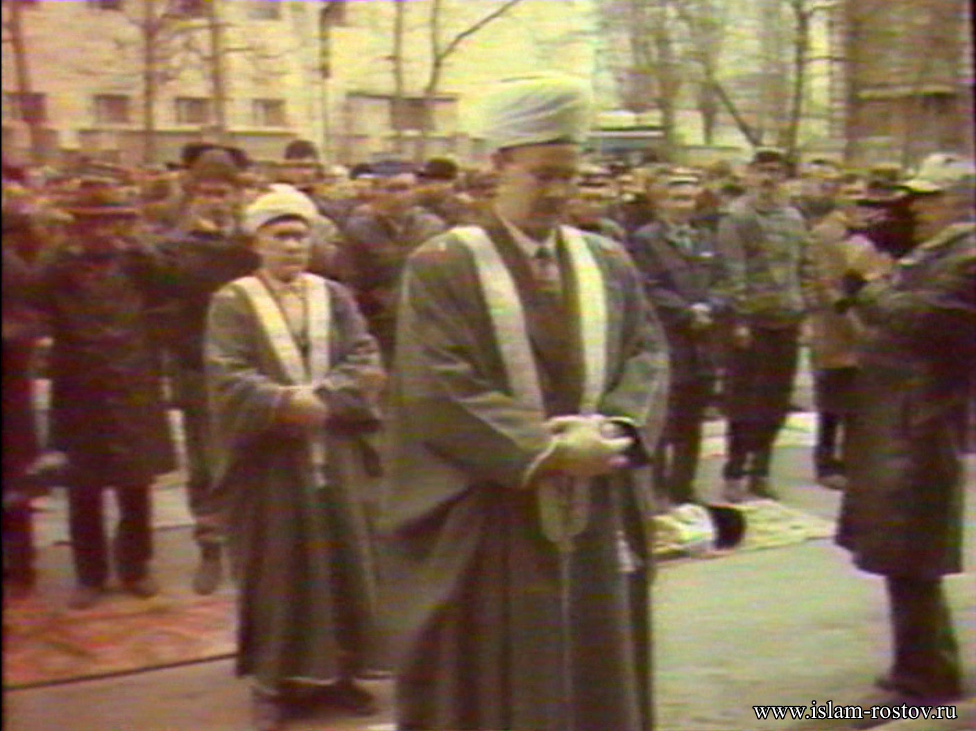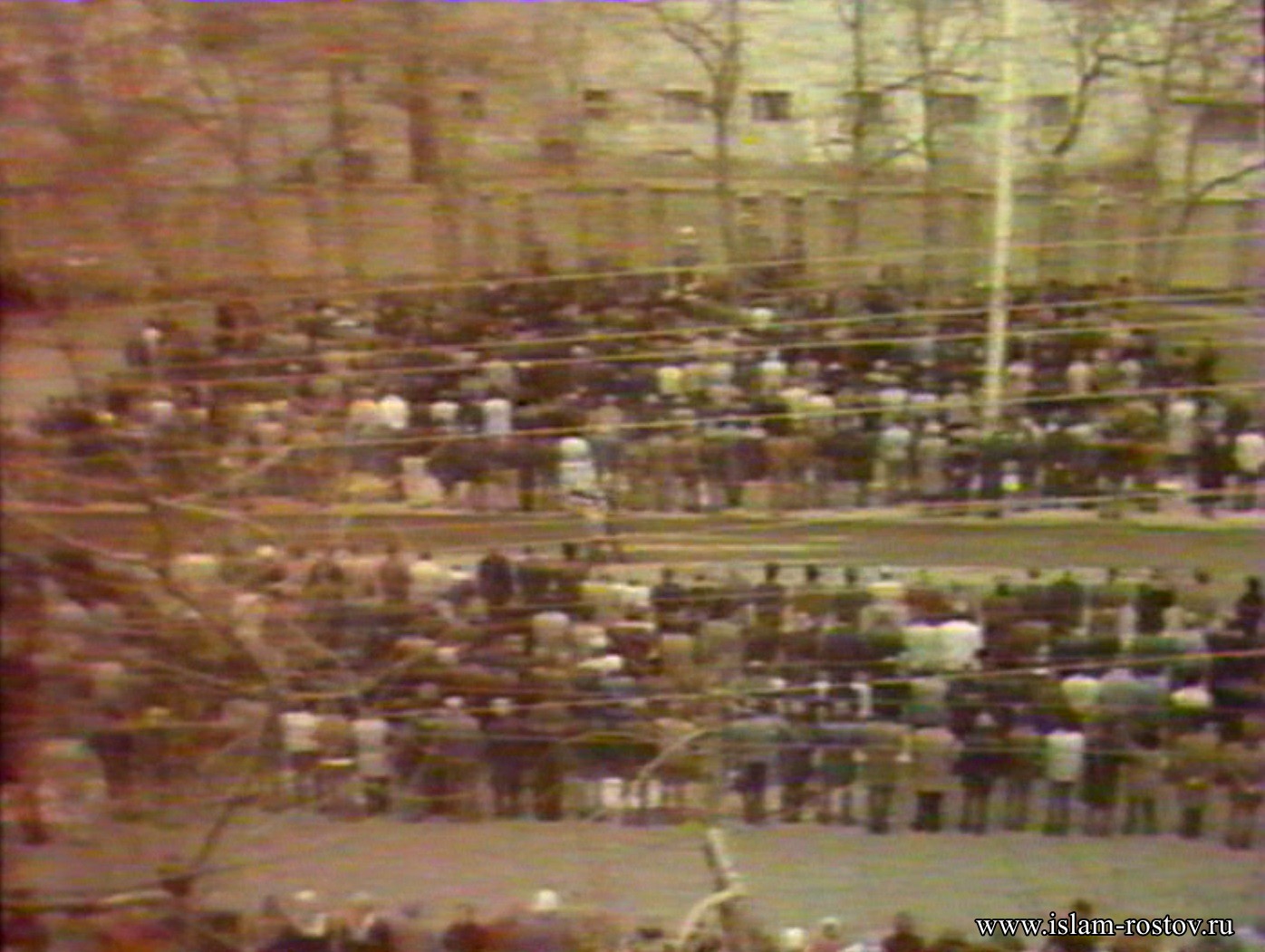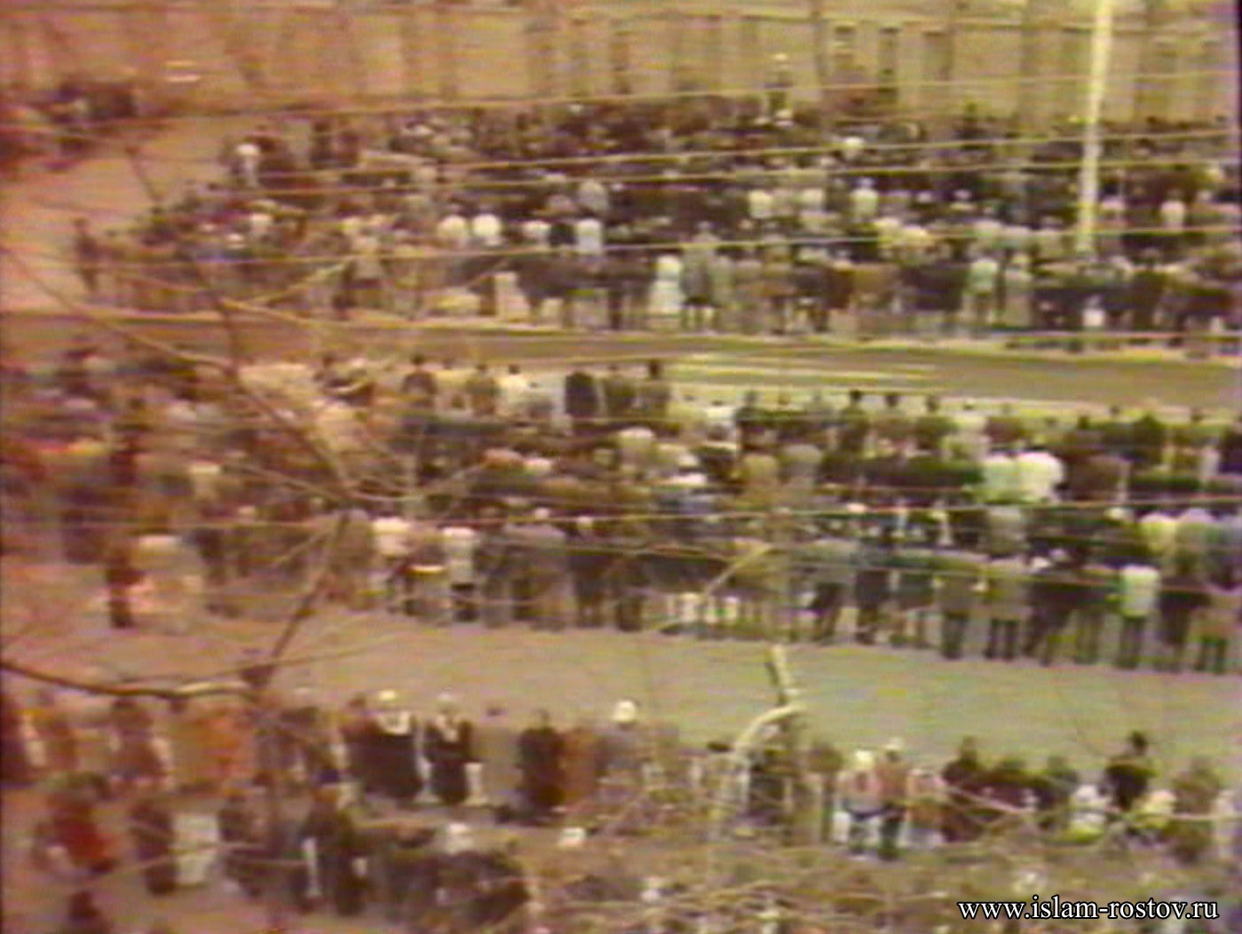 Видеозапись праздничной молитвы Рамазан-байрам совершенной в 1993 году возле исторической мечети на ул. Красноармейской 97.