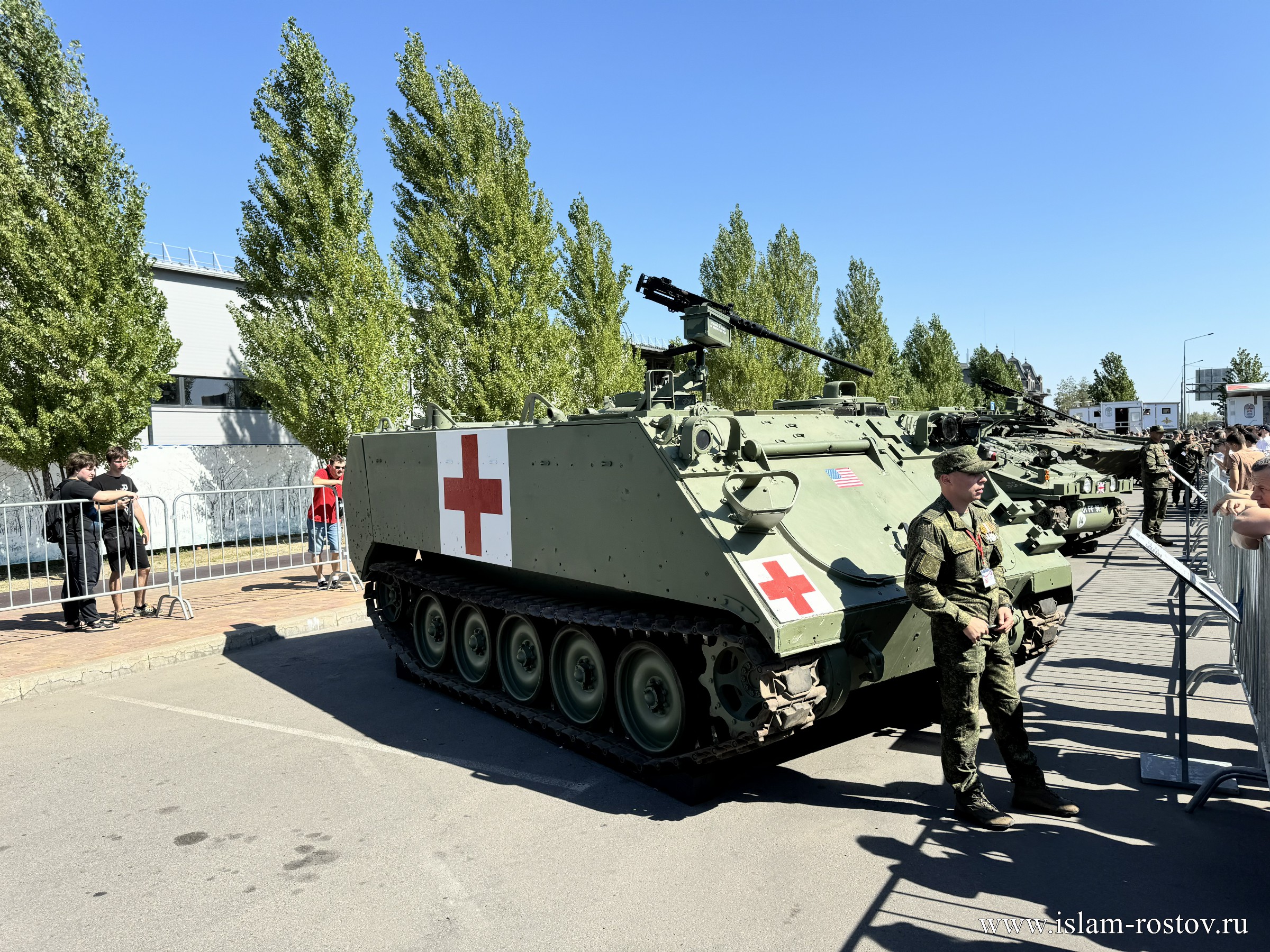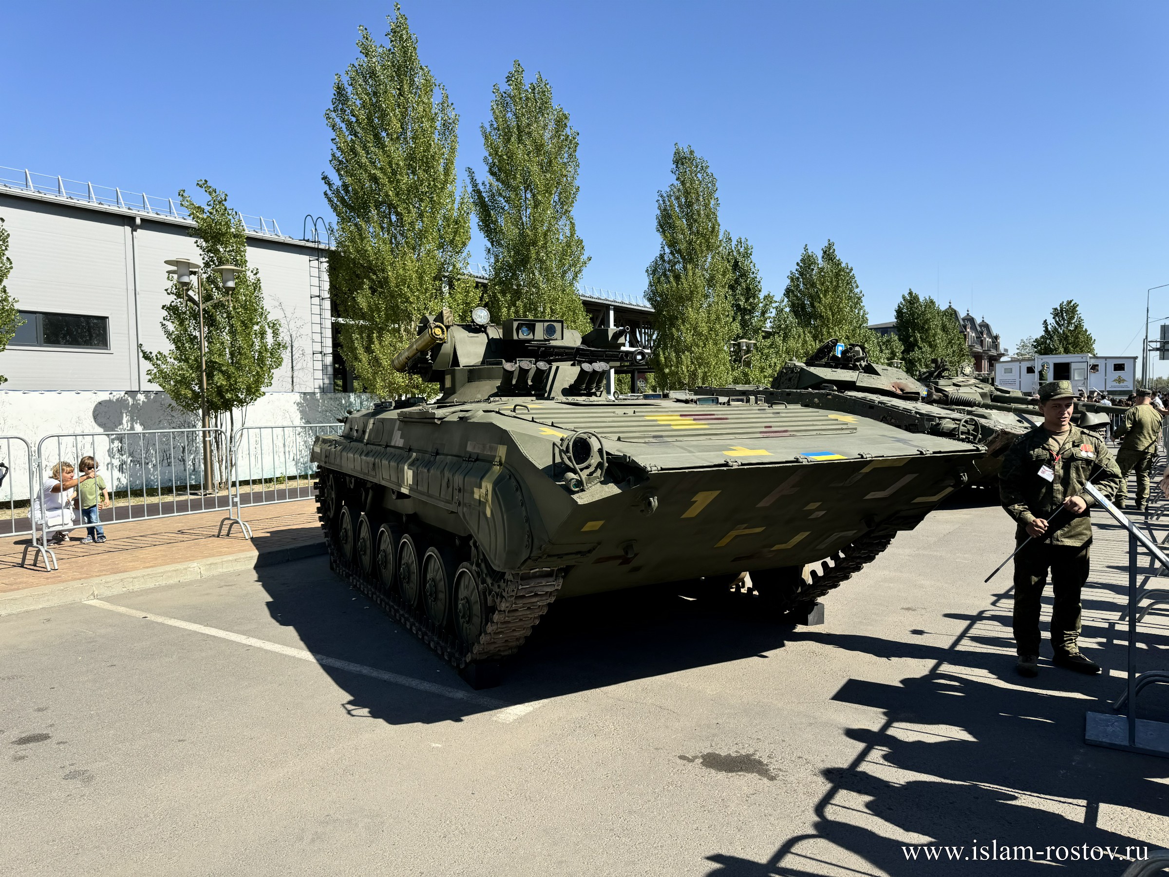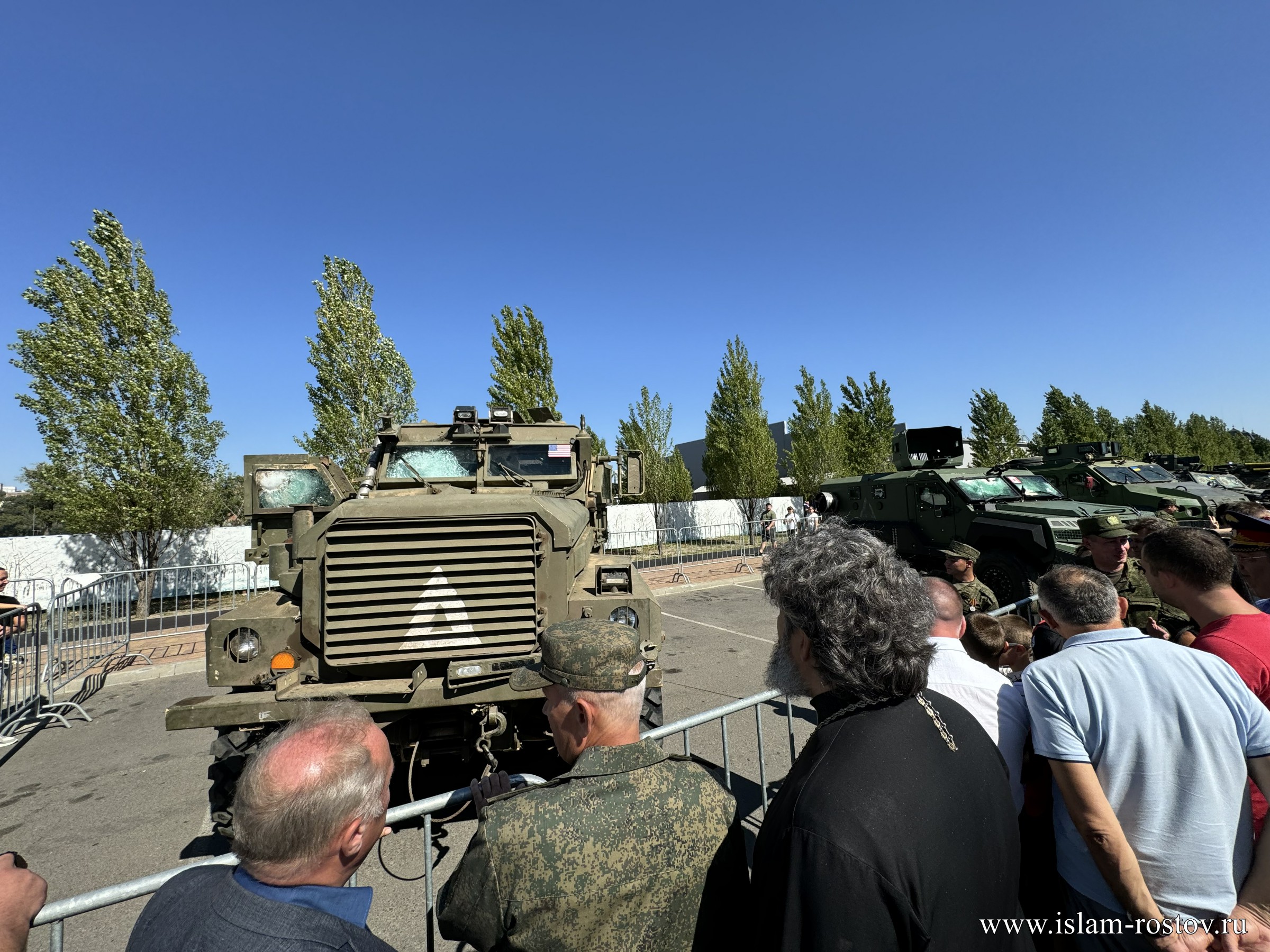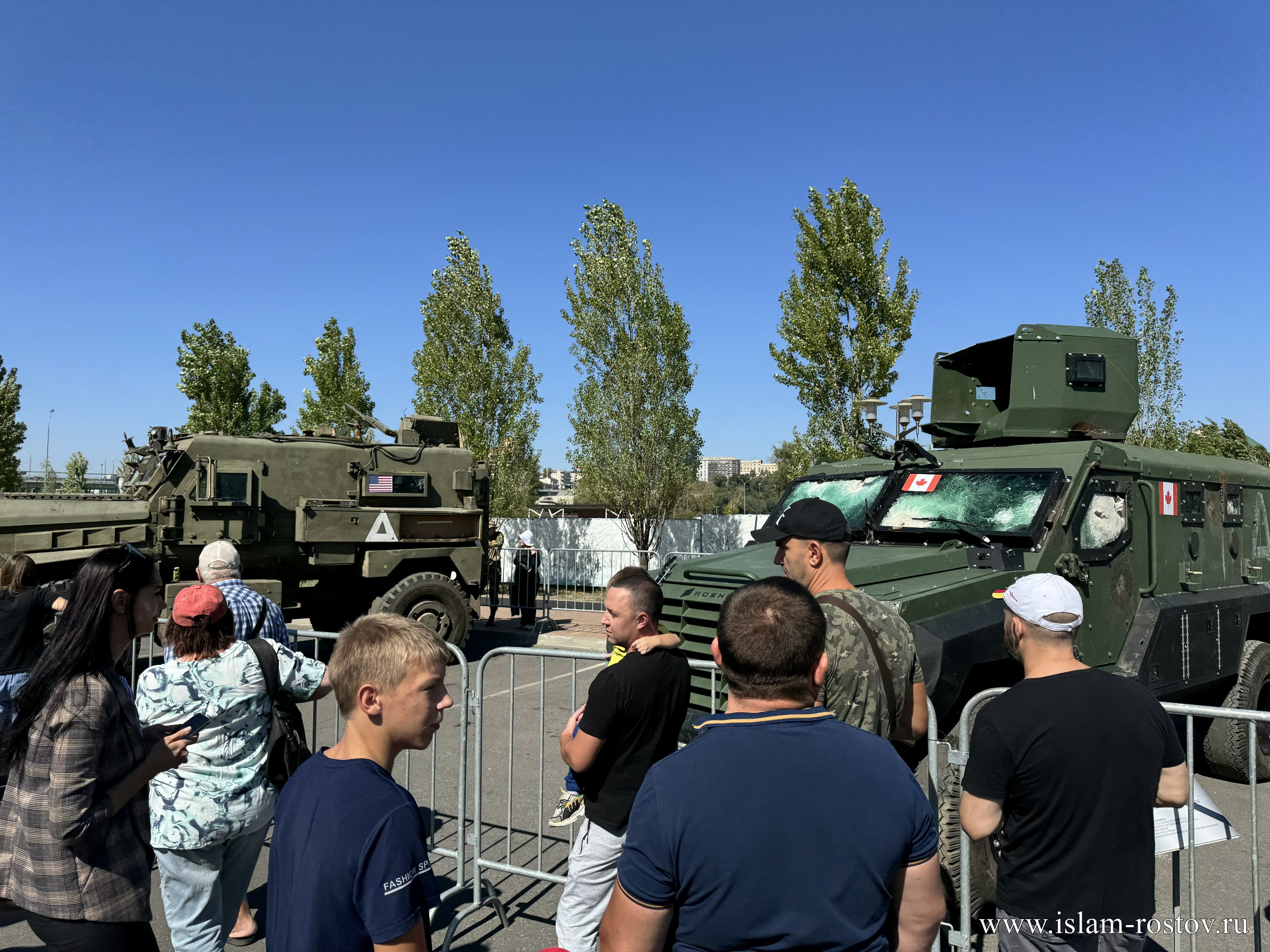 На территории парка «Левобережный» в г. Ростове-на-Дону, Штаб командования войсками Южного военного округа представил трофейную военную технику, захваченную российскими военнослужащими в ходе проведения специальной военной операции в Донецкой Народной Республике. На выставке можно увидеть иностранные бронетранспортеры, бронеавтомобиль, танк, боевую машину пехоты, а также трофейные разведывательные и ударные беспилотные летательные аппараты, стрелковое и противотанковое вооружение противника.