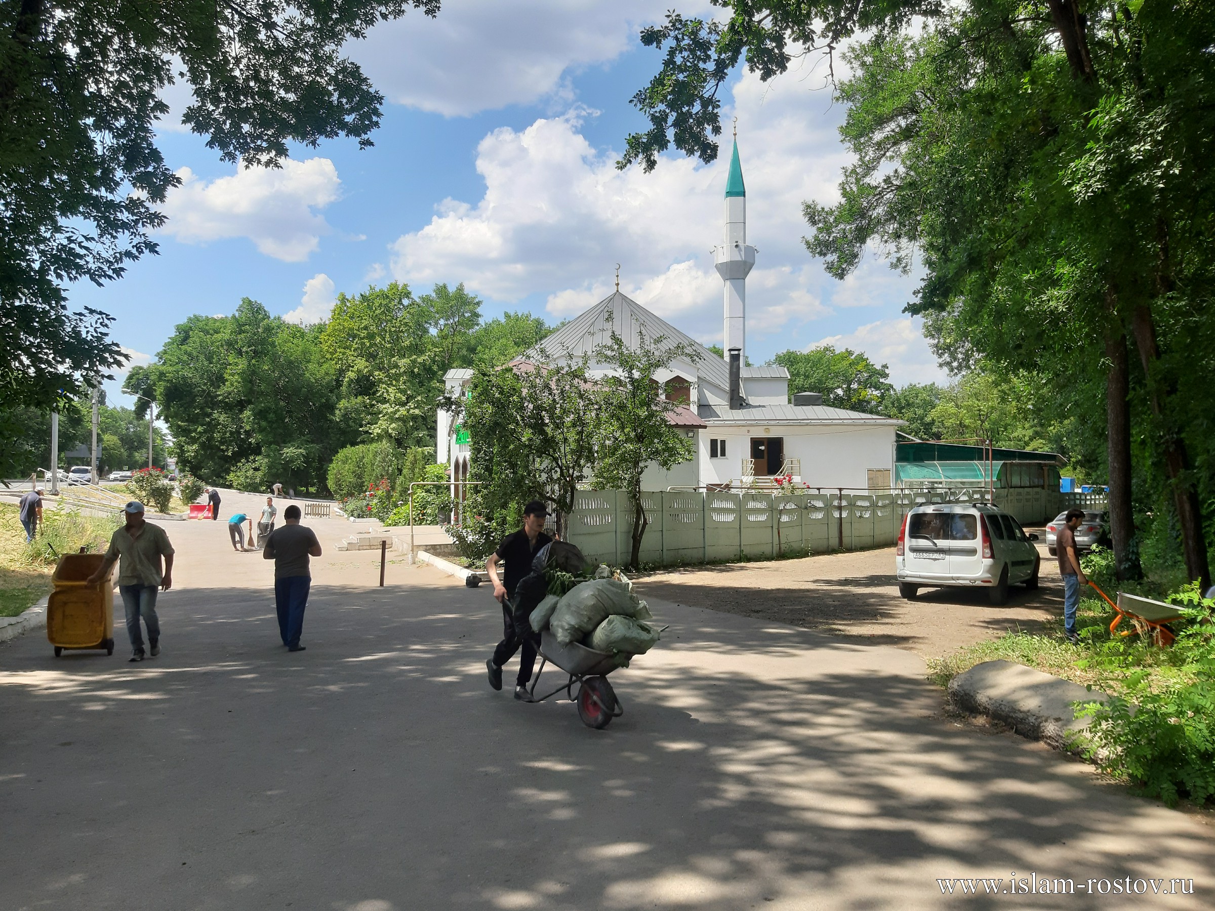 В выходной день, мусульмане города, откликнувшись на призыв имам-хатыба Наиль хазрата Бикамева, провели субботник на  территории  соборной мечети г. Ростова-на-Дону, очистив от ветоши и мусора мечеть и её прилегающую территорию. Данные субботники стали доброй традицией для прихожан мечети.