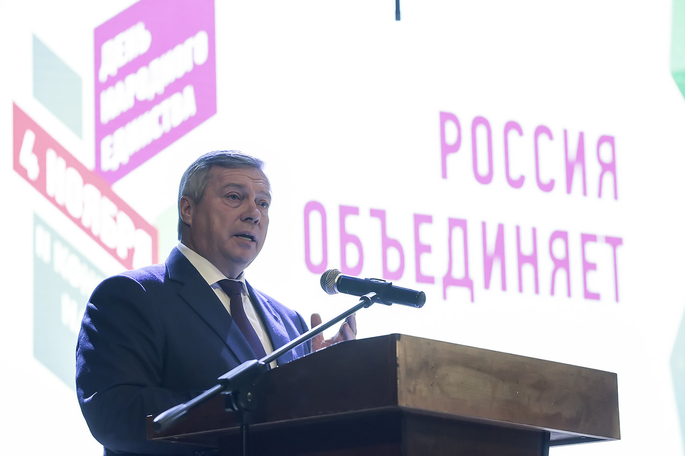 «День народного единства - государственный праздник, который консолидирует общество. Исторически донская земля – территория добрососедского проживания представителей более чем 150 народов и этнических групп. На Дону 80% участников социологических опросов положительно оценивают состояние межэтнических отношений», - сказал Василий Голубев.