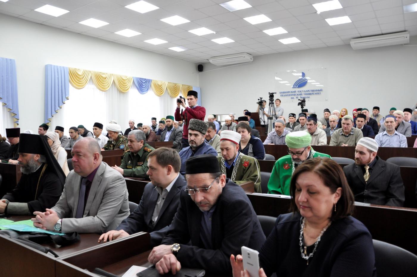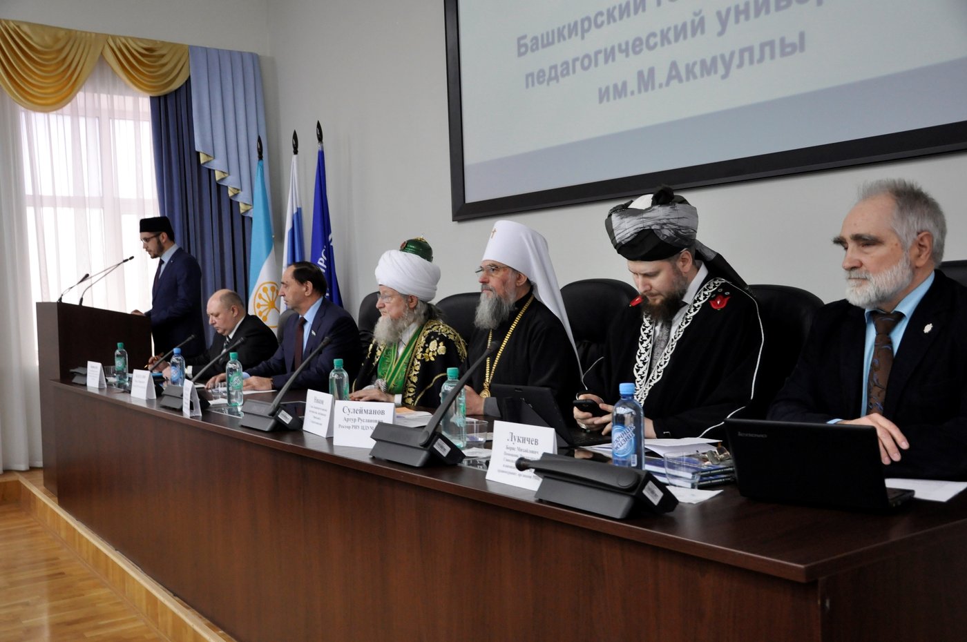 Президиум возглавляли: Шейх-уль-Ислам, Верховный муфтий, Председатель ЦДУМ России Талгат Сафа Таджуддин; Глава Башкортостанской митрополии, Управляющий Уфимской епархией РПЦ (МП), митрополит Уфимский и Стерлитамакский НИКОН; консультант Главного управления по работе с личным составом ВС РФ Владимир Боровский; помощник Председателя Синодального отдела по взаимодействию с ВС и правоохранительными органами Русской православной церкви Борис Лукичев; ректор РИУ ЦДУМ России Артур Сулейманов; ректор БГПУ им.Акмуллы, профессор Раиль Асадуллин.