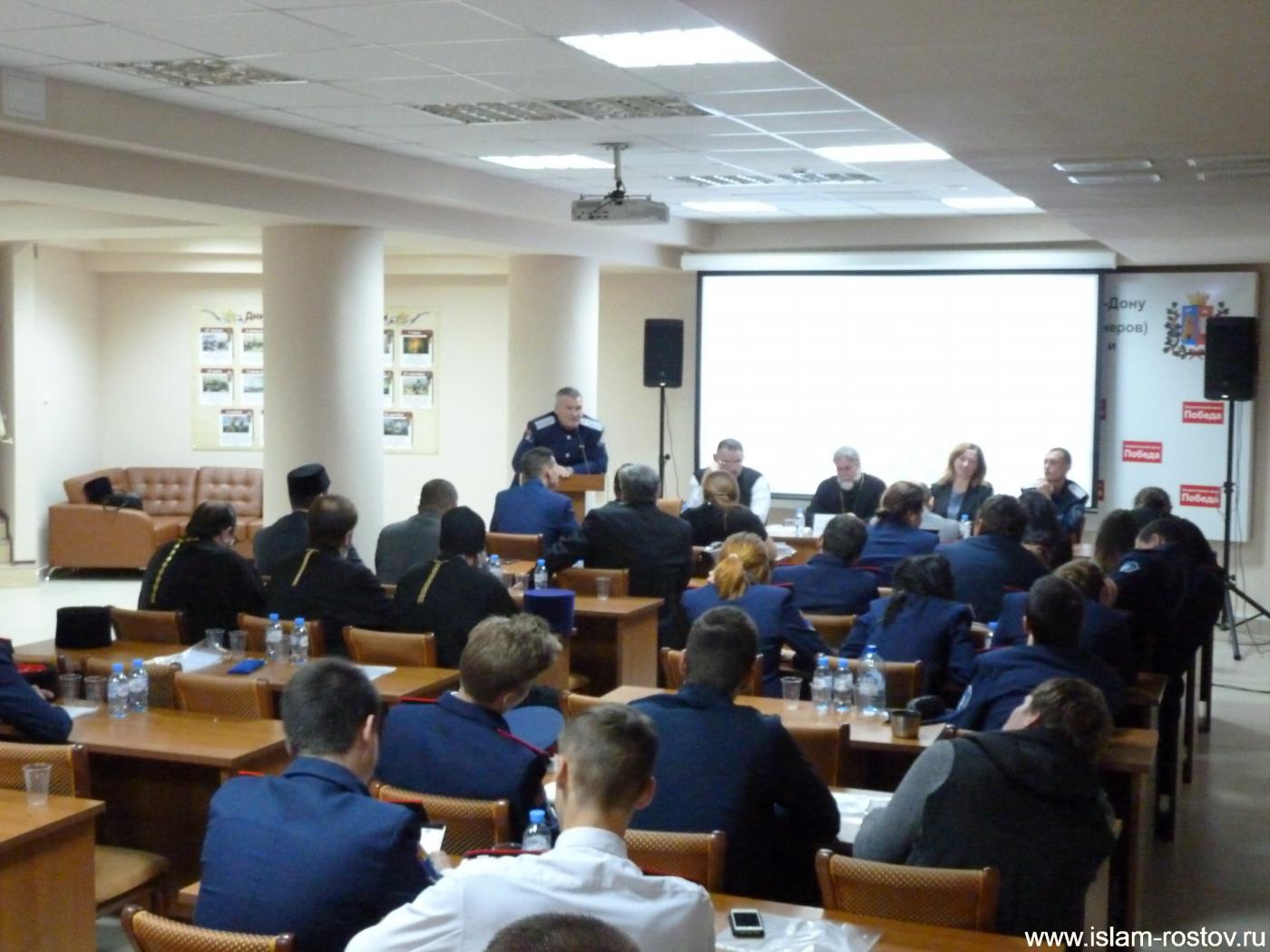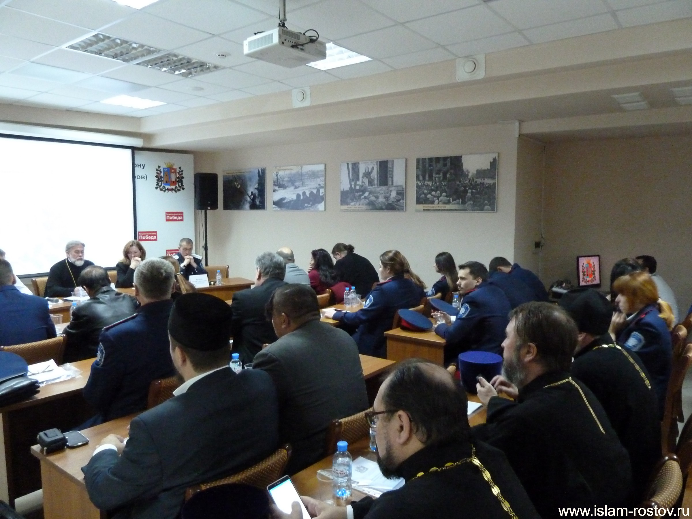 По приглашению председателя комитета по межнациональным вопросам, религии и казачеству Администрации г. Ростова-на-Дону Ю.В. Аникиной, участие в круглом столе принял заместитель муфтия Ростовской области Мухаммед Бикмаев. В своем выступлении Мухаммед Бикмаев сказал, что профилактика экстремизма в молодежной среде является весьма актуальной задачей в настоящее время и последние трагические события свидетельствуют об этом. Для сохранения мира и недопущения правонарушений, в первую очередь этим необходимо заниматься родителям в семьях, воспитывая домочадцев в духе традиционных религиозных ценностей и с раннего возраста прививать уважительное отношение к людям различных национальностей и конфессий. Поскольку от человека искренне верующего, исходит только мир и безопасность.