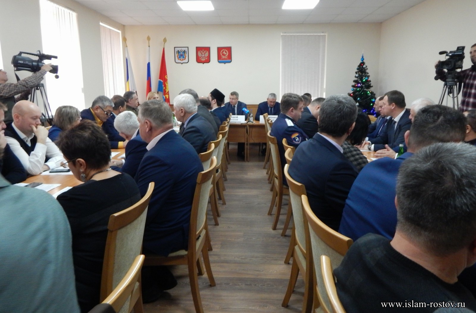 Присутствовали главы муниципальных районов, городских округов и сельских поселений юго-востока Ростовской области, представители общественных и религиозных организаций. Председательствовал замглавы региона Василий Рудой. Центральное Духовное Управление мусульман Ростовской области в работе заседания представил заместитель муфтия Ростовской области Мухаммед Бикмаев.